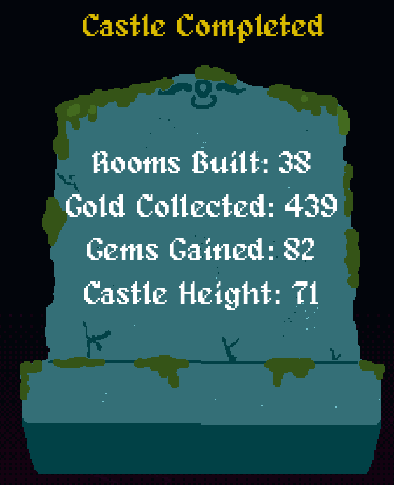 (If you are looking to do more on this, I think there is a minor bug when your castle gets high - some of the rooms disappear as you put them on the board. I saw this a few games in a row when I was getting to around c. level 70+)