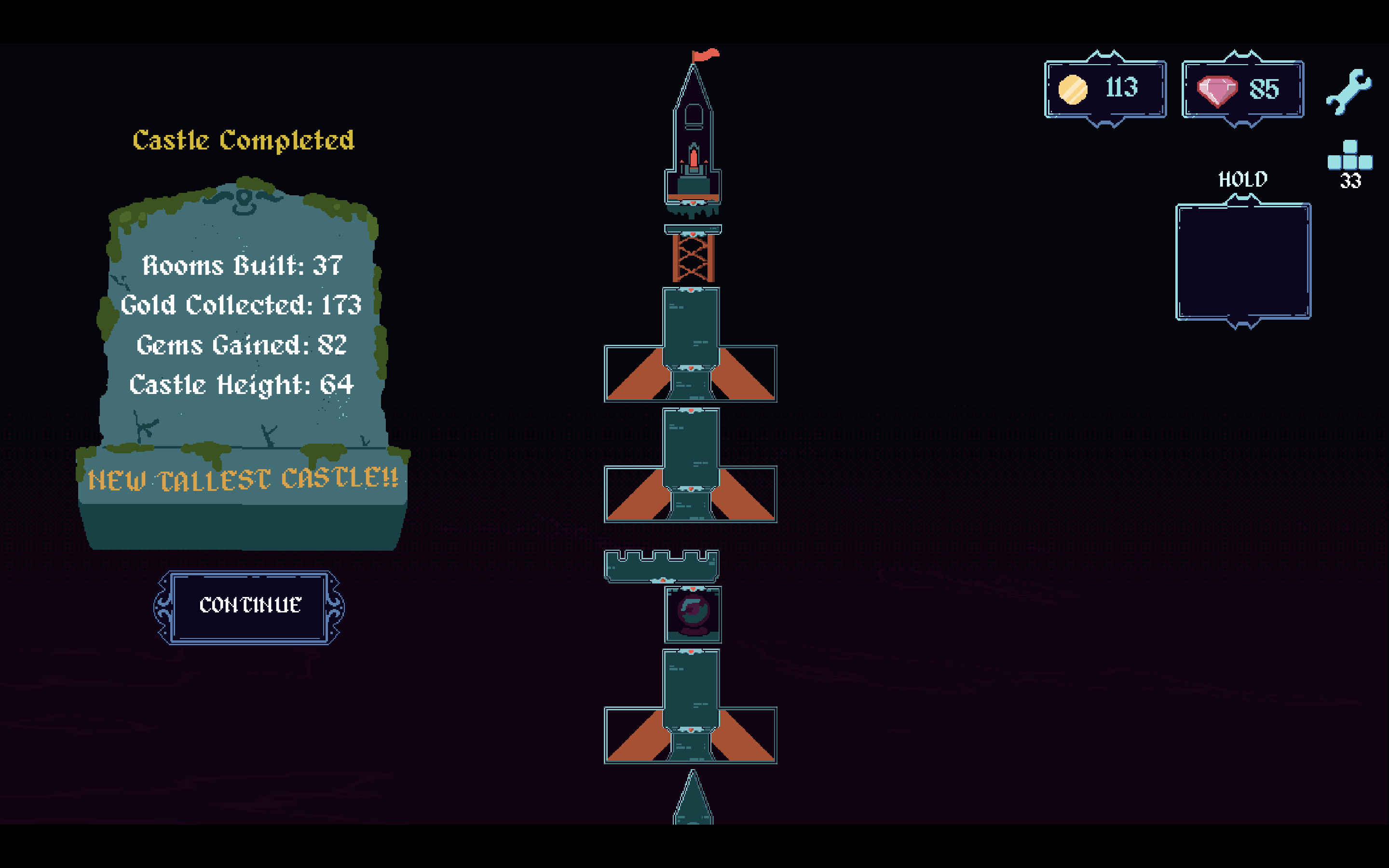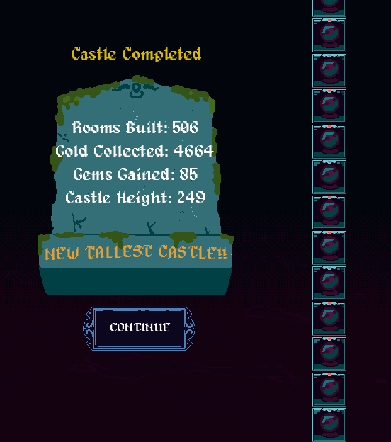Build up the castle by placing rooms strategically to get bonuses. Spend Gems between centuries to get new rooms and build your home ever higher. Will you be able to build a Castle tall enough to escape this loop of Rebirth and Defeat.